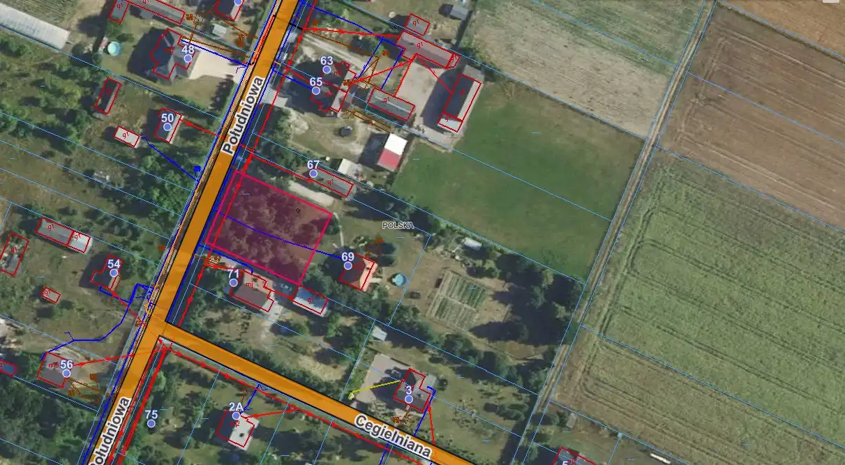 - Media Woda: na działce; Kanalizacja: w ulicy; Prąd: jest; Gaz: brak