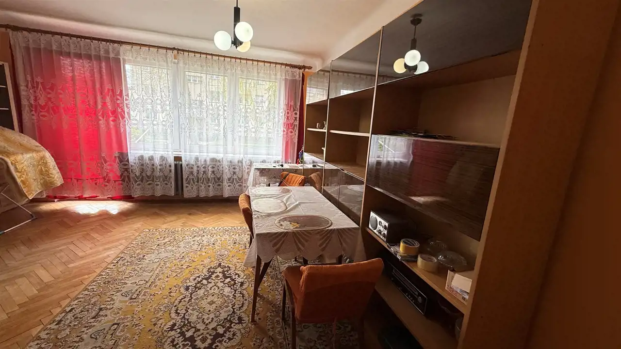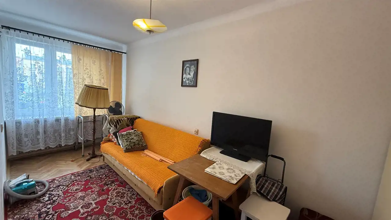 Mieszkanie składa się z przestronnego salonu, sypialni oraz kuchni i łazienki i WC. Z salonu można wyjść na mały balkon, który będzie świetnym miejscem na chwilę relaksu. Na podłogach znajduje się parkiet, który po odnowieniu doda wnętrzu uroku. Instalacje elektryczne są aluminiowe, co w przypadku remontu może wymagać modernizacji. W mieszkaniu brak podzielników ciepła, co może wpłynąć na łatwiejsze zarządzanie kosztami ogrzewania.