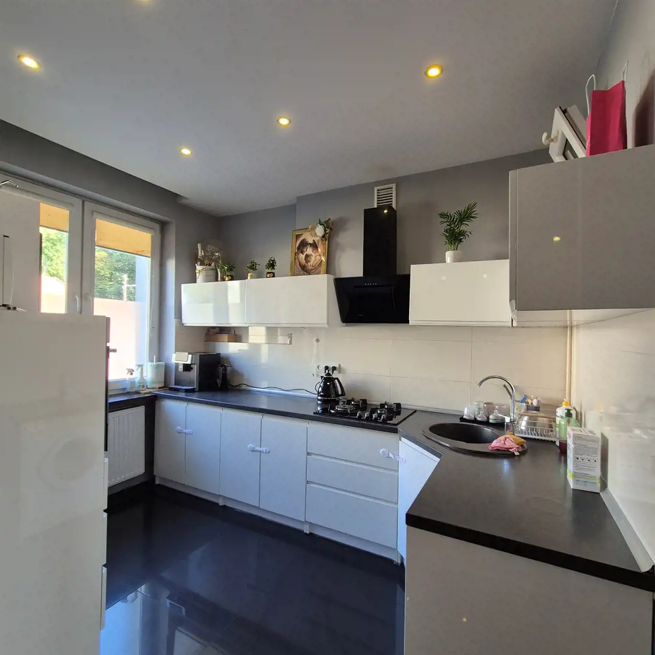 Kuchnia: zabudowa kuchenna, pralka, okap, lodówko-zamrażarka, płyta gazowa, piekarnik, zlewozmywak z baterią.