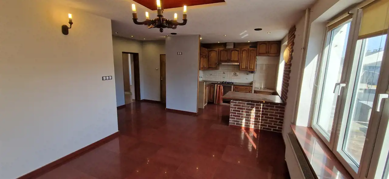 przestronny, bardzo dobrze nasłoneczniony salon z aneksem kuchennym,