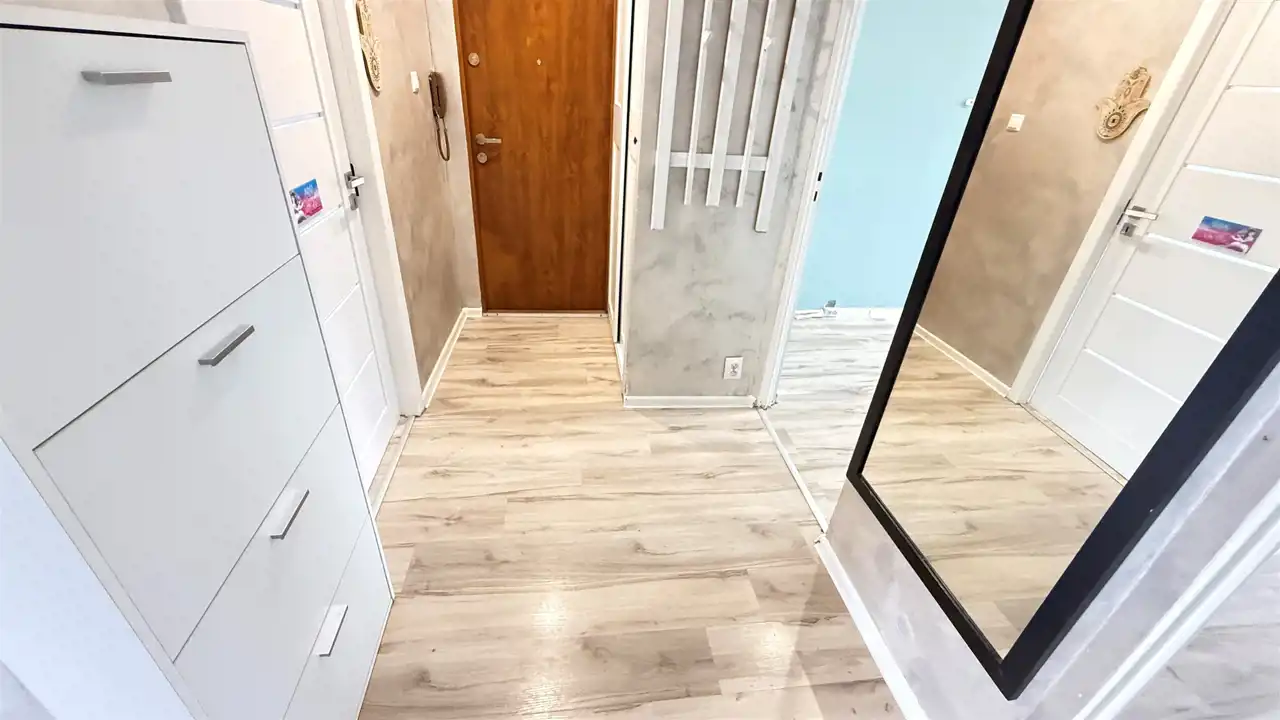 Mieszkanie jest umeblowane i gotowe do zamieszkania. Kilka lat temu przeszło remont, obecnie wymaga jedynie odświeżenia według własnych potrzeb i gustu, co daje nowemu właścicielowi możliwość aranżacji wnętrza zgodnie z własną wizją.