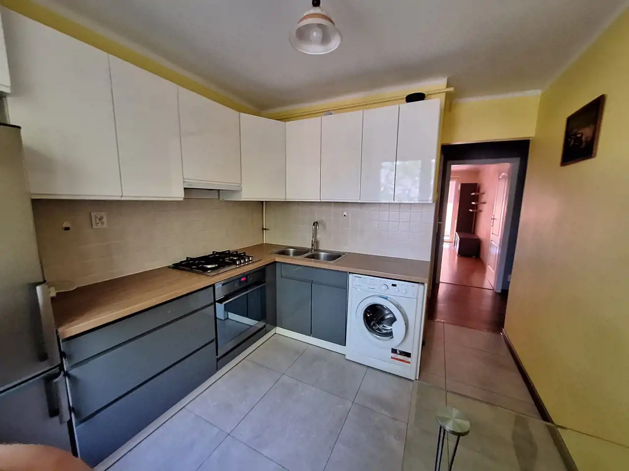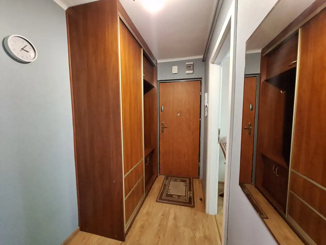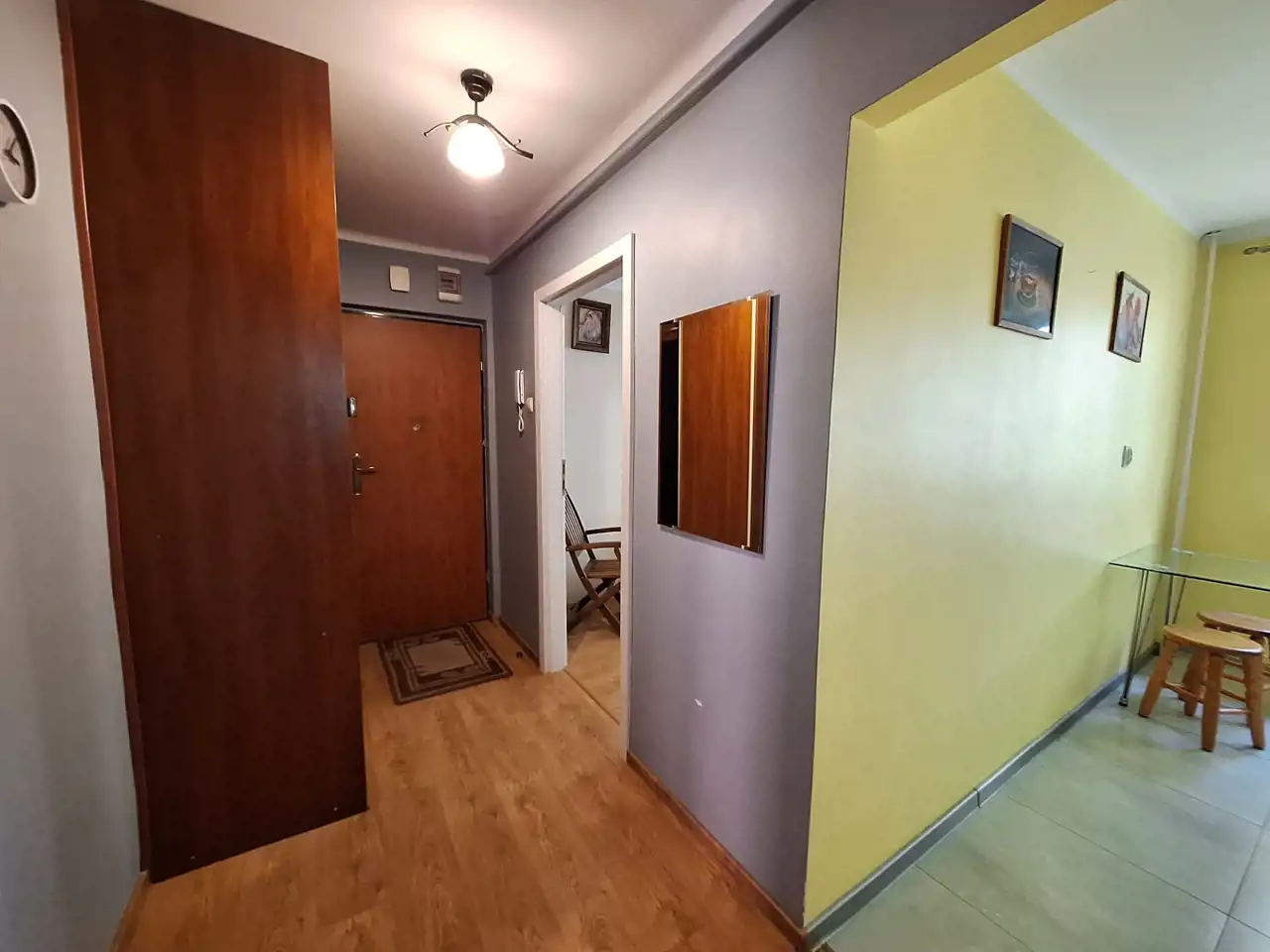 Z przedpokoju, w którym wygospodarowane miejsce na zabudowaną szafę, bezpośrednie wejścia do każdego z pomieszczeń: dwóch pokoi, kuchni, łazienki z wc. Z salonu o powierzchni 15,5 m2 wyjście na duży balkon. Drugi pokój to mniejsza sypialnia o powierzchni 8,5 m2. W pokojach na podłodze panele. Jasna i przestronna 8,2 m2 kuchnia wyposażona jest zabudowę meblową w praktycznym ułożeniu i niezbędnym wyposażeniem AGD.