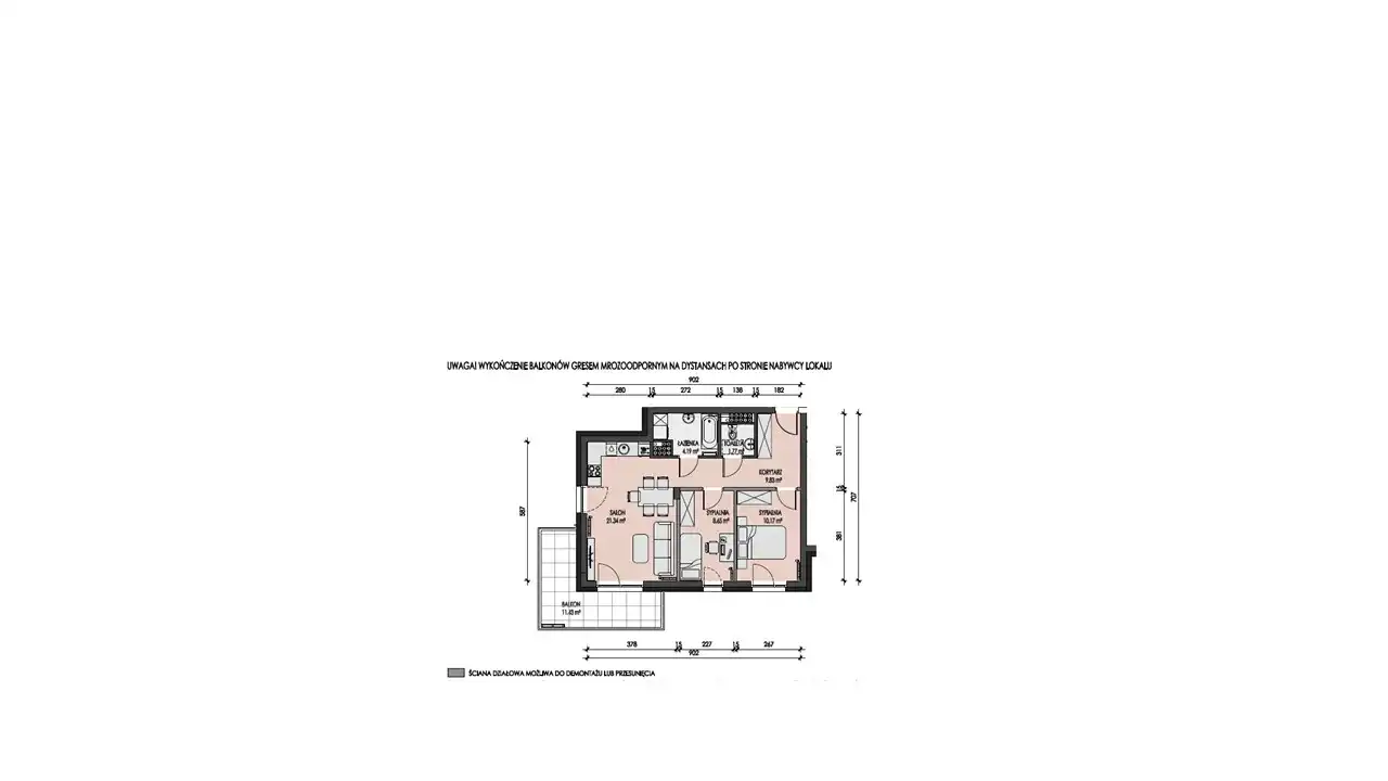 - Charakterystyka mieszkania 55.95 m2, 3 pokoje
