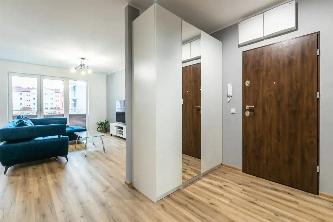 Mieszkanie charakteryzuje się funkcjonalnym układem pomieszczeń, dużą ilością naturalnego światła oraz wysokim standardem wykończenia. To idealna propozycja dla rodzin, par lub osób ceniących komfort i bezpieczeństwo.