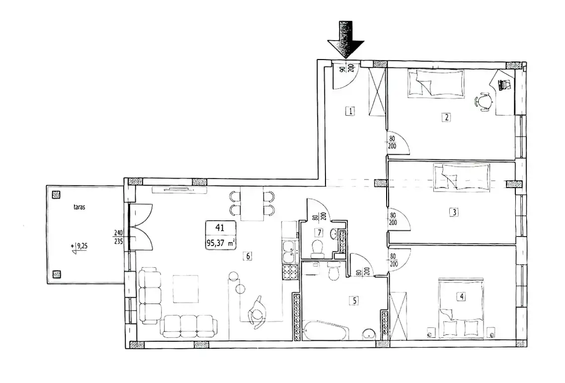 - Charakterystyka mieszkania 95.37 m2, 4 pokoje