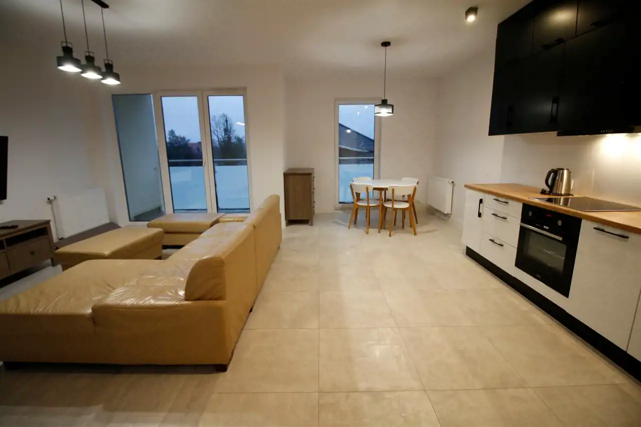 Do wynajęcia mieszkania dwupokojowe o powierzchni użytkowej 50,02 m2, położonego na pierwszym piętrze w nowym bloku na zamkniętym osiedlu.
