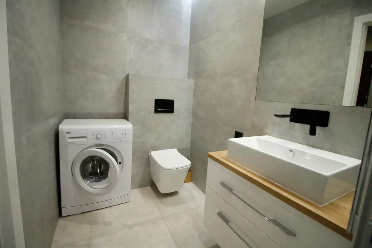 Mieszkanie składa się z przedpokoju z którego mamy niezależne wejścia do sypialni, łazienki oraz przestronnego i bardzo widnego salonu połączonego z aneksem kuchennym i częścią jadalną. Całe mieszkanie utrzymane w neutralnych, przyjemnych dla oka barwach, w aneksie kuchennym funkcjonalne meble z niezbędnym sprzętem AGD.
