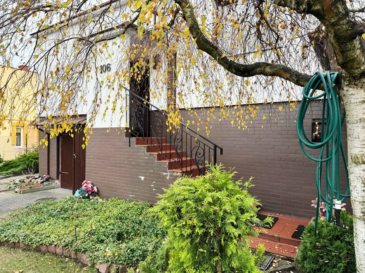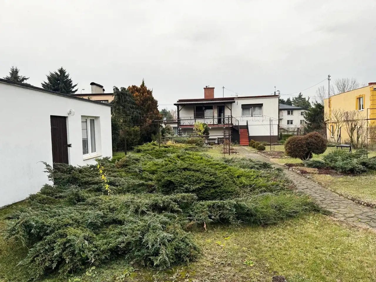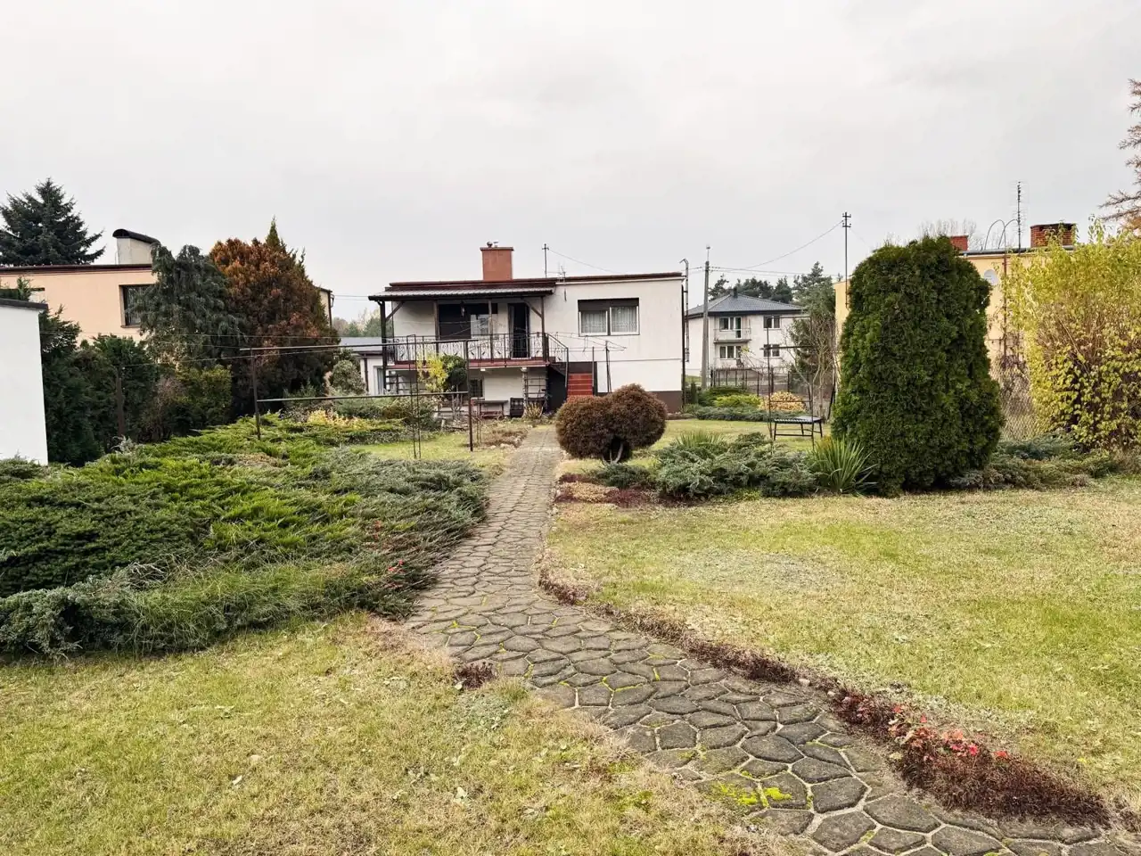- Pięknie zagospodarowana działka – trawa, drzewa, krzewy ozdobne