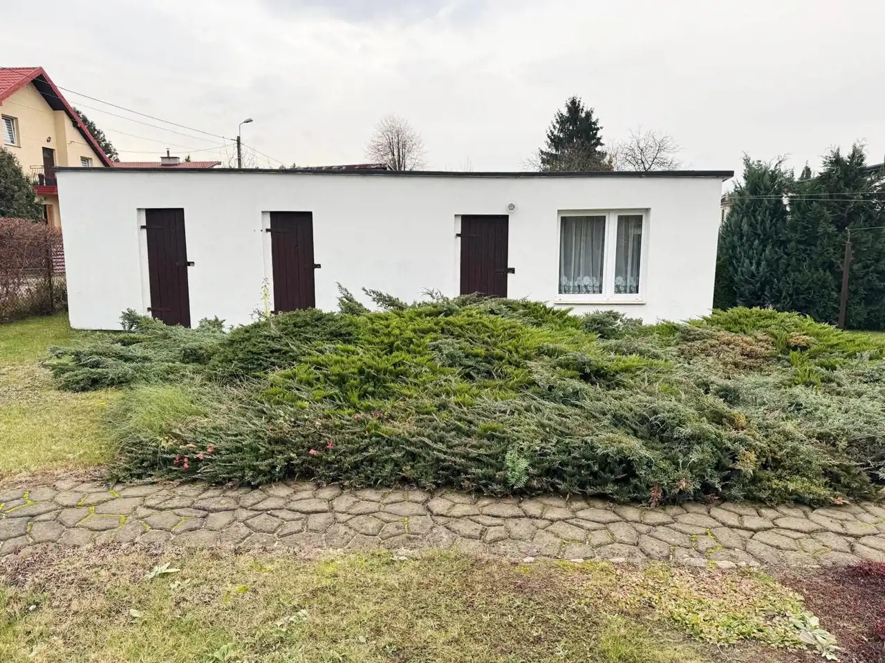 - Z przodu domu przybudówka z osobnym wejściem – pokój z toaletą i umywalką (idealne np. pod wynajem lub gabinet),