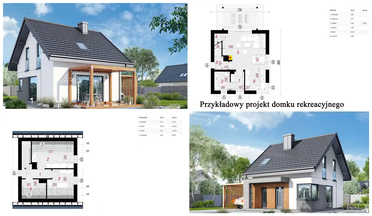 - Minimalna powierzchnia zabudowy to 35 m2 a maksymalna to 70 m2 (do powierzchni tej nie wlicza się powierzchni odkrytych tarasów, pod warunkiem że nie powoduje to konieczności wycinki drzewostanu).