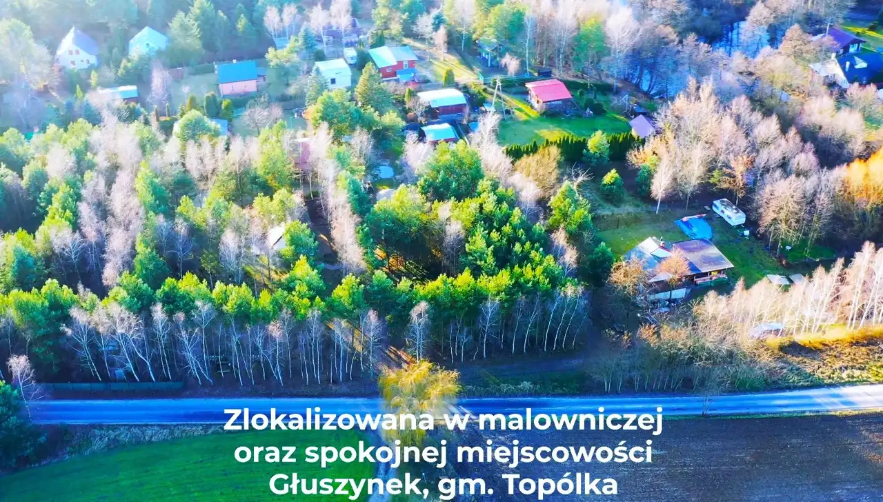 - Działka zlokalizowana jest w szalenie malowniczej oraz spokojnej miejscowości Głuszynek, gm. Topólka.