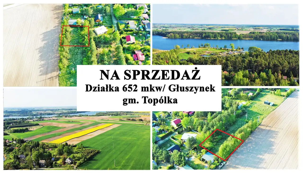 Działka zlokalizowana jest w malowniczej oraz spokojnej miejscowości tj. Głuszynek, gm. Topólka. W pobliżu nieruchomości znajdują się liczne lasy oraz Jezioro Głuszyńskie. W bliskim otoczeniu nieruchomości występuje zabudowa jednorodzinna oraz domki letniskowe.