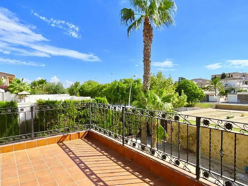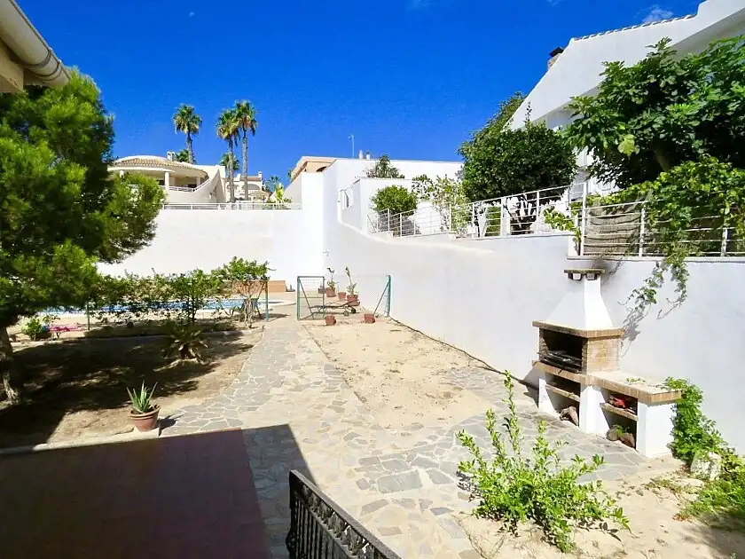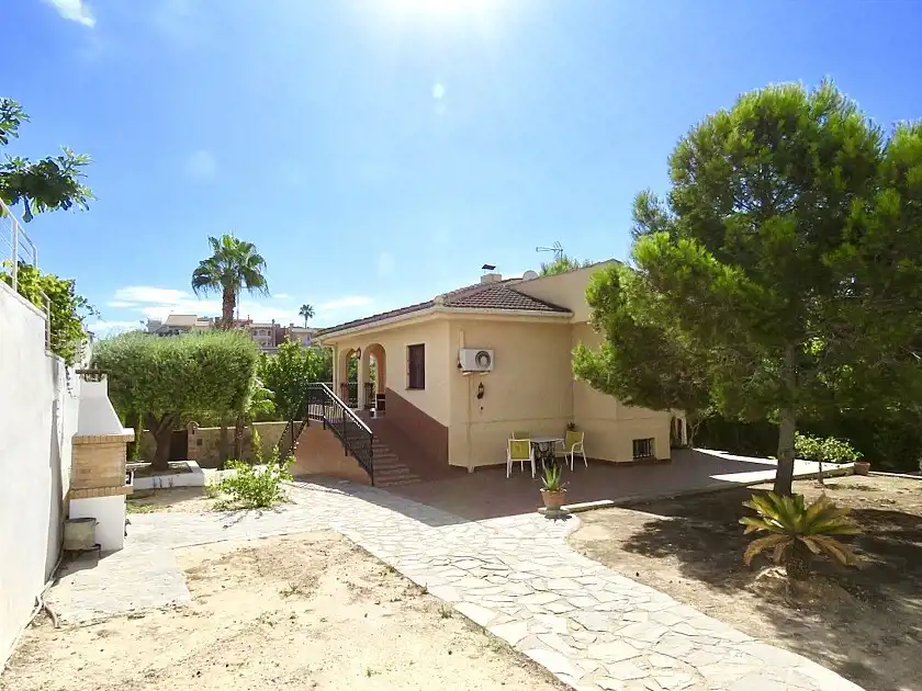 Willa z 3 sypialniami i basenem w Los Balcones. Wolnostojąca dwupiętrowa willa z działką i prywatnym basenem w Los Balcones. Na piętrze znajdują się 2 sypialnie i 2 łazienki, salon z kominkiem, oddzielna kuchnia i taras. Na parterze znajduje się kolejny salon z kuchnią, 1 sypialnia i druga łazienka, kolejny salon i pomieszczenie gospodarcze. Parter można rozbudować o 2 dodatkowe sypialnie. Na działce znajduje się parking na 2 lub 3 samochody, miejsce na grilla oraz miejsce do odpoczynku. W pobliżu wszystkie niezbędne usługi, obszary handlowe z restauracjami i kawiarniami, supermarkety, plac zabaw, szkoły publiczne, klub tenisowy, Szpital Uniwersytecki Torrevieja i inne placówki użyteczności publicznej. 5-10 minut samochodem do plaż na południu miasta, Cala Ferrís i plaż Punta Prima i Playa Flamenca. Ole International jest niezależną i w pełni legalną agencją nieruchomości specjalizującą się w odsprzedaży, nowych domach i przejęciach banków na Costa Blanca i Costa Cálida. Nasze biuro znajduje się naprzeciwko słynnego Plaza de Villamartin i klubu golfowego Villamartin. Posiadamy zespół handlowy, który może obsługiwać naszych klientów w kilku językach. Oferujemy obsługę klienta opartą na uczciwości, profesjonalizmie i zaufaniu, po ponad dwóch dekadach doświadczenia w sprzedaży domów w południowo-wschodniej Hiszpanii. Naszym celem jest pomoc od początku do końca w poszukiwaniu Twojego hiszpańskiego domu, nie tylko na początku wyszukiwania, ale przez cały proces: procedury posprzedażowe, kupno-sprzedaż, notariusz, podatki itp. Jeśli potrzebujesz skontaktować się z nami w przypadku jakichkolwiek pytań lub uzyskać bardziej bezpośredni kontakt z jednym z naszych przedstawicieli handlowych, numer telefonu do naszego biura to (0034) 966764302, nasz ogólny adres e-mail kontaktowy to info@oleinternational.com. Jesteśmy zawsze do Twojej dyspozycji.