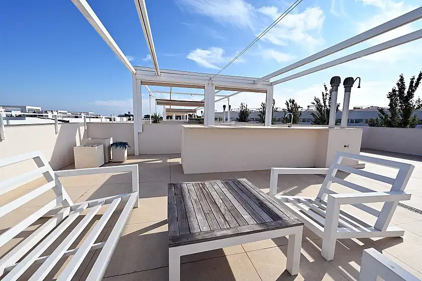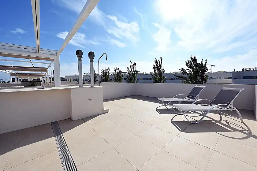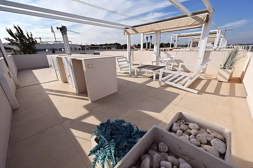 Przestronny penthouse z 2 sypialniami i 2 łazienkami w dzielnicy mieszkalnej Mirasal w Los Balcones w Torrevieja. Jest sprzedawany w pełni umeblowany i wyposażony w wysokiej jakości meble, klimatyzację ciepłą/zimną oraz podziemne miejsce parkingowe. Ponadto skorzystaj ze słonecznego solarium z widokiem na słone równiny Torrevieja. Znajduje się zaledwie 6 minut od plaż w Torrevieja, 10 minut samochodem do Orihuela Costa i dwie minuty do wszystkich usług.