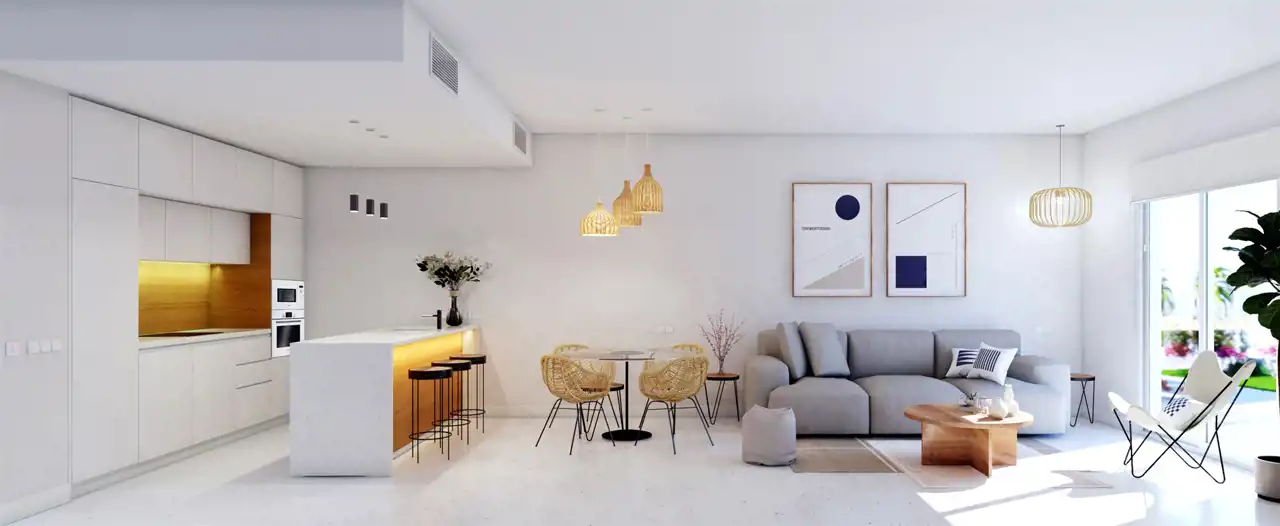 Nowa inwestycja bungalowów, zlokalizowana na obrzeżach Torrevieja, bardzo blisko morza, tylko 250m.