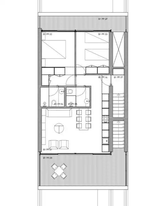 Zadbany, nowoczesny apartament/bungalow na pierwszym piętrze z 2 sypialniami i 2 łazienkami.