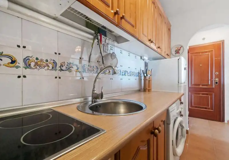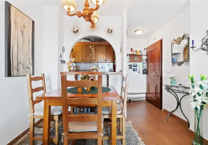 Przytulny apartament z 1 sypialnią, 1 łazienką, z kuchnią w stylu amerykańskim, jadalnią i przeszklonym tarasem. Znajduje się w dzielnicy Torrevieja, w La Mata. W bezpośredniej bliskości znajduje się zaplecze gastronomiczno-handlowe. Mieszkanie jest umeblowane. Na terenie osiedla znajduje się basen a do pięknej, piaszczystej plaży dzieli zaledwie kilkuminutowy spacer.