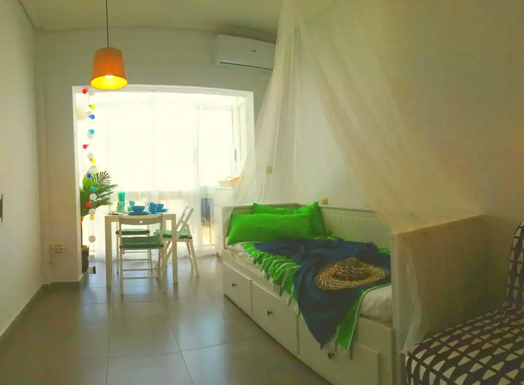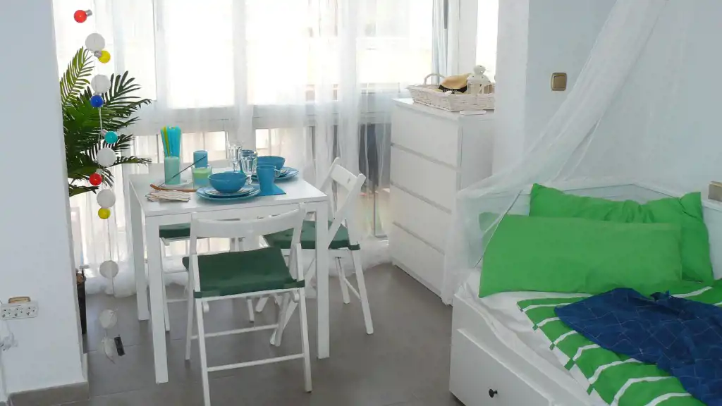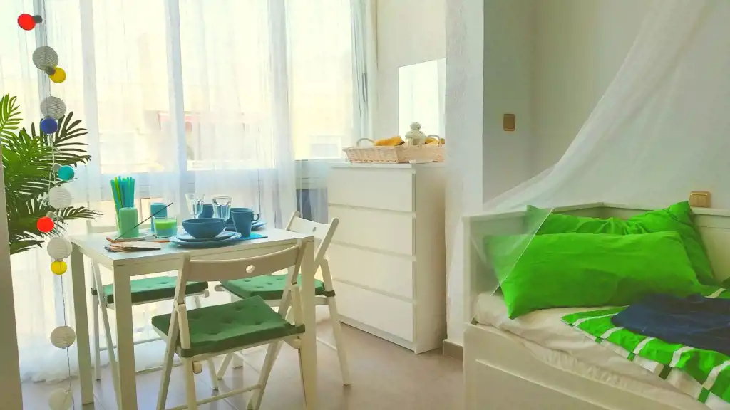 Słoneczny, południowy apartament typu studio na VII piętrze z widokiem na morze, zaledwie 200 m od szerokiej plaży. Portowe miasto zapewnia bezpośredni dostęp do zaplecza handlowo-kulinarnego i rozrywki.