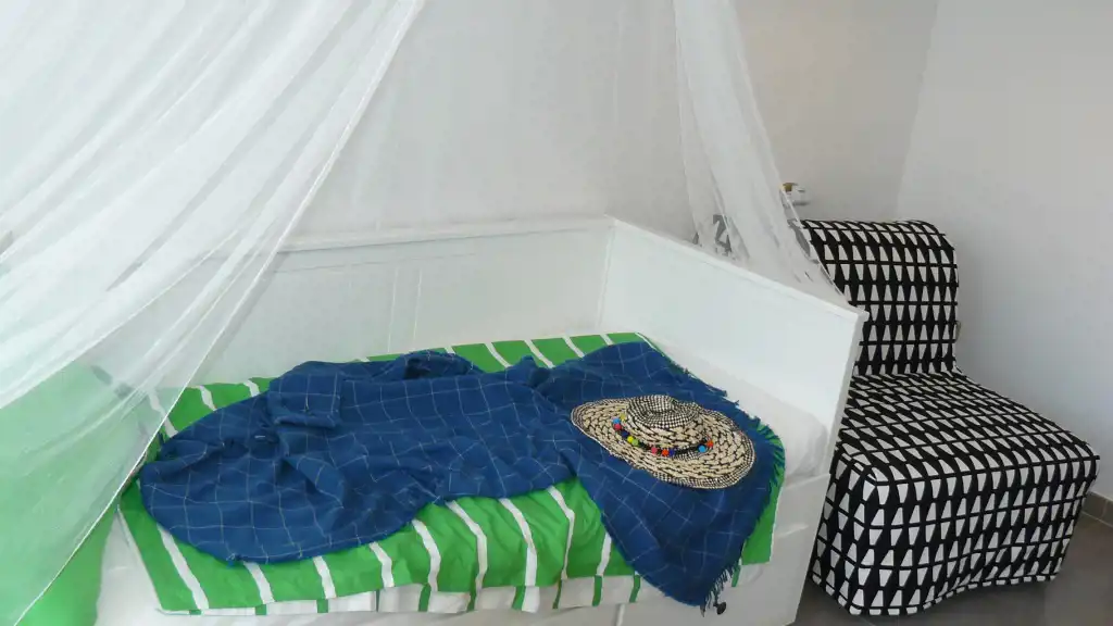 Apartament posiada rozkładaną kanapą oraz rozkładany fotel, zapewniając miejsca do spania dla max. 3 osób.