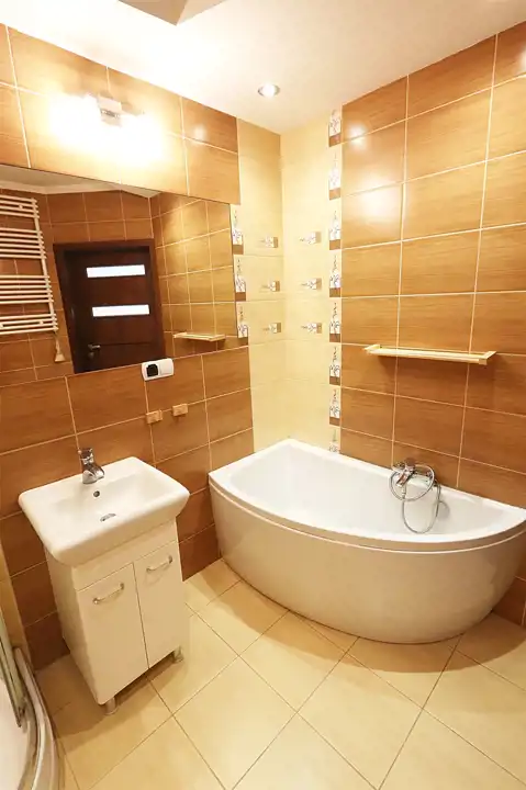 – łazienka z WC wyposażona w prysznic oraz wannę