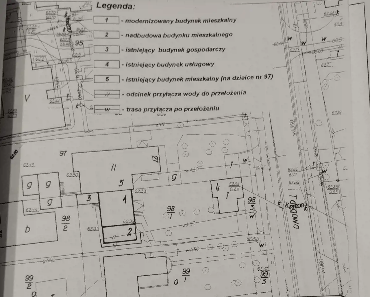 Nieruchomość gruntowa o powierzchni 780m2 zabudowana jest budynkiem mieszkalnym trzylokalowym w zabudowie bliźniaczej i budynkiem usługowym.