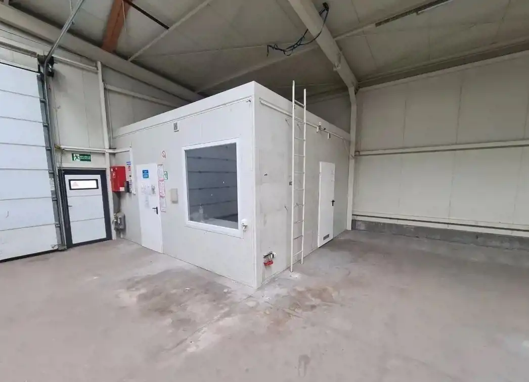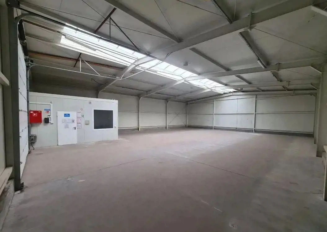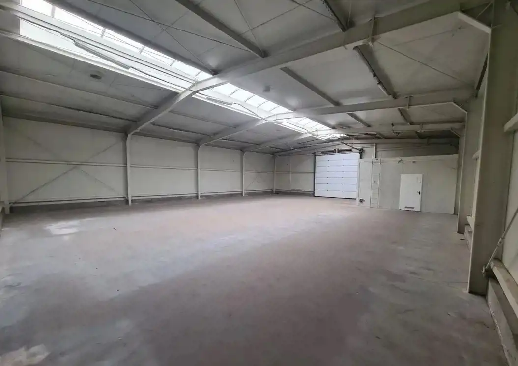 Pierwszy budynek to hala magazynowa wykonana z płyty warstwowej o wielkości 316,7 m2 , wysokość budynku 5,5 m - 4,5 m, szerokość 15 m, długość 20m, brama wjazdowa 4,5 m wysokość, szerokość 5,5 m składająca się z powierzchni magazynowej i zaplecza socjalnego w skład którego wchodzi biuro, kuchnia, łazienka i toaleta. Hala została wybudowana w 2008 roku, biuro magazynu i zaplecze socjalne jest zasilane ogrzewaniem z budynku biurowego .