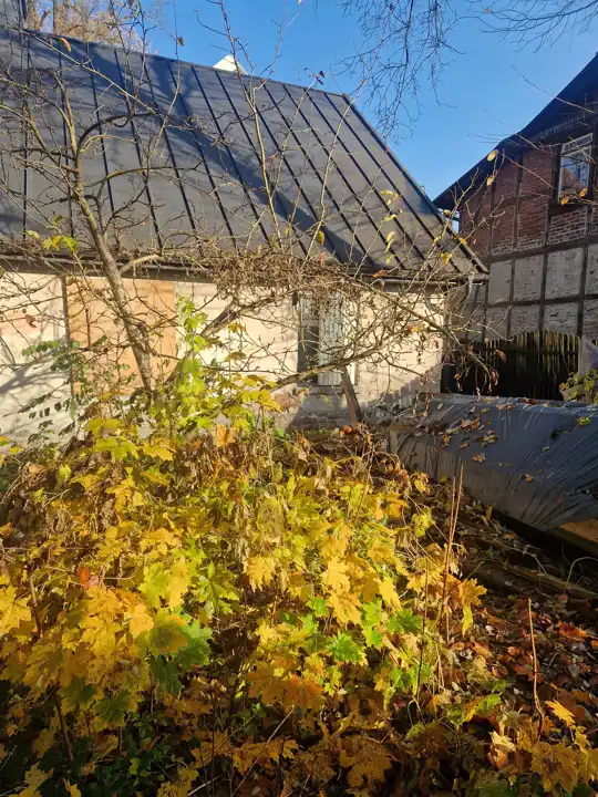 Ściany murowane z cegły ceramicznej, nowy dach dwuspadowy pokryty blachodachówką - wymieniony 6 lat temu.