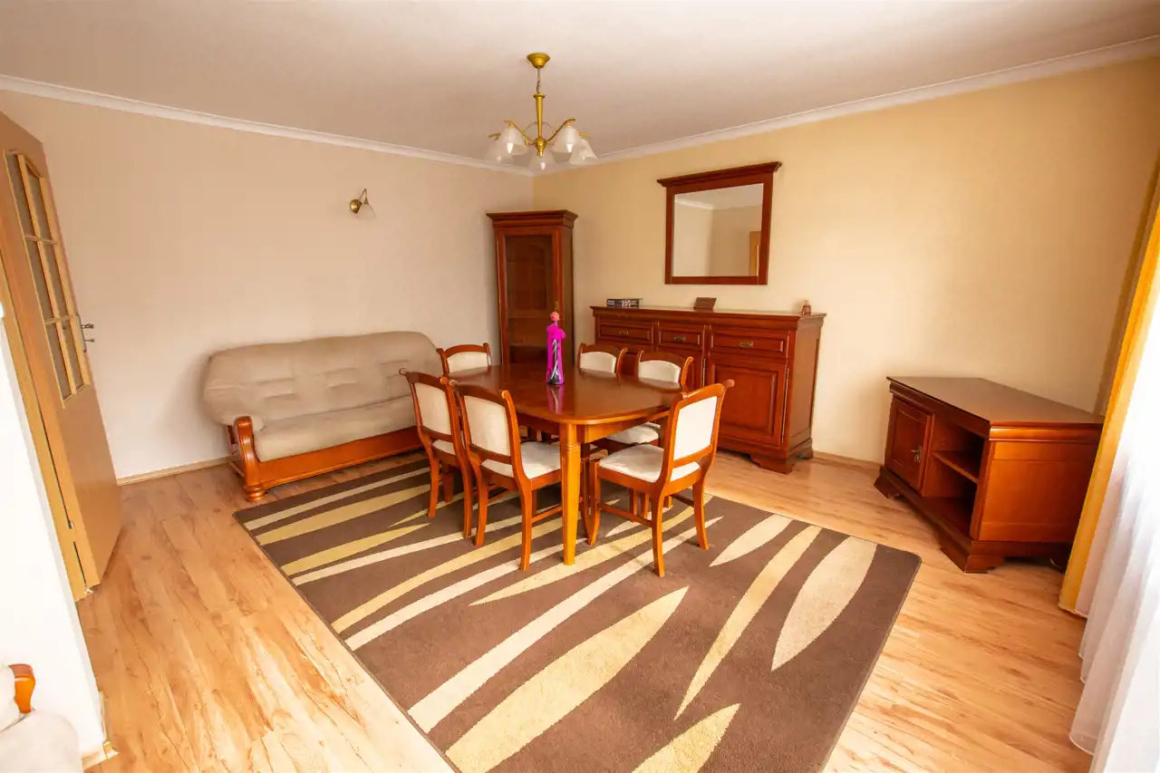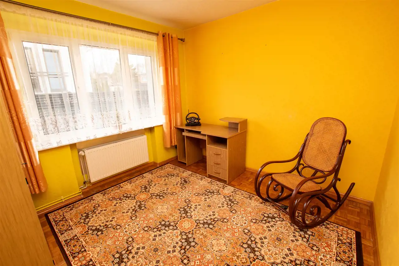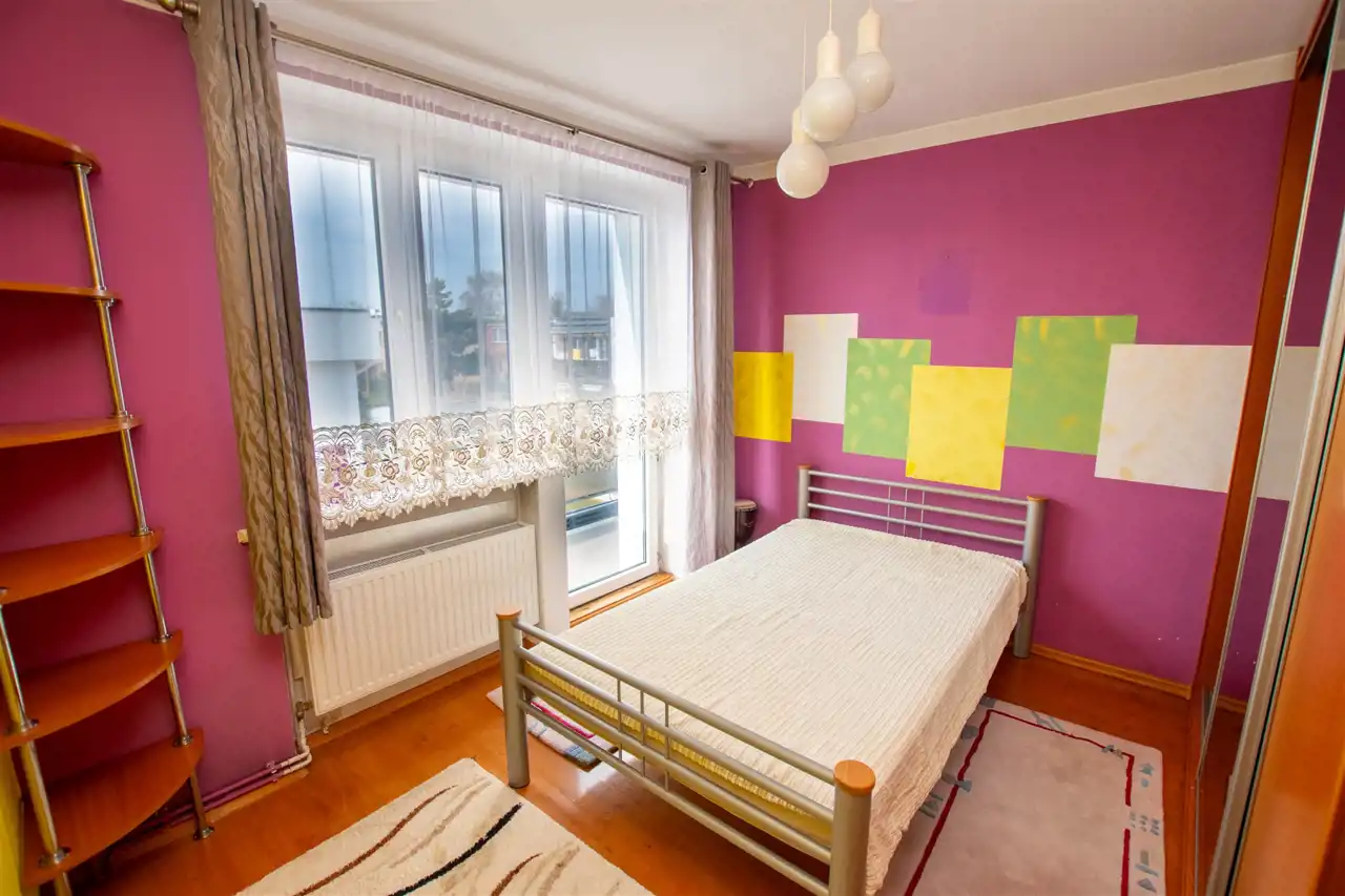 - dwa w pełni niezależne pokoje, jeden z nich 11,29 m2, drugi z nich 12,47 m2, w jednym z pokoi wyjście na balkon, ponadto w nim do dyspozycji zabudowa szafa oraz łóżko małżeńskie, drugi z pokoi bardzo ustawny, na podłogach mozaika parkietowa, na ścianach gładzie,