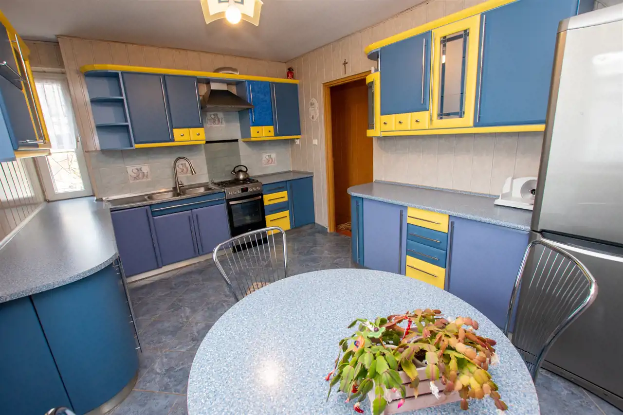 - obok salonu do dyspozycji jasna kuchnia wyposażona w zabudowę kuchenną wraz ze sprzętem agd (kuchnia, lodówka z zamrażarką).