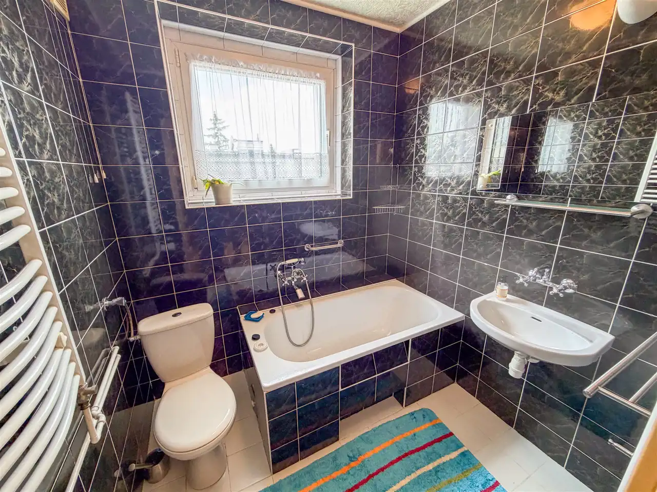 - łazienka wraz z wc - do dyspozycji wanna i wc, ponadto w pomieszczeniu znajduje się okno, co powoduje, iż takie pomieszczenie łatwiej przewietrzyć,