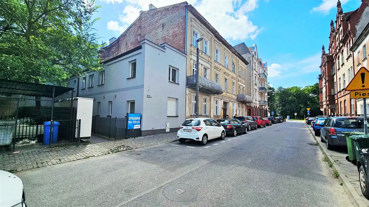 Budynek o powierzchni 143 m² położony jest na ogrodzonej działce o powierzchni 173 m² w sercu Torunia tuż obok miejskiego parku