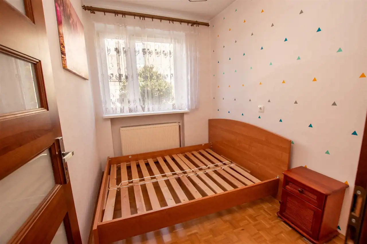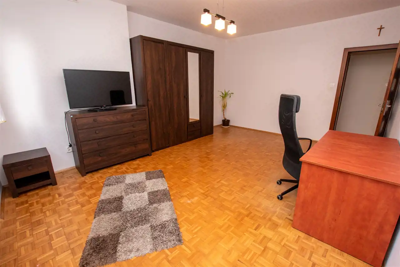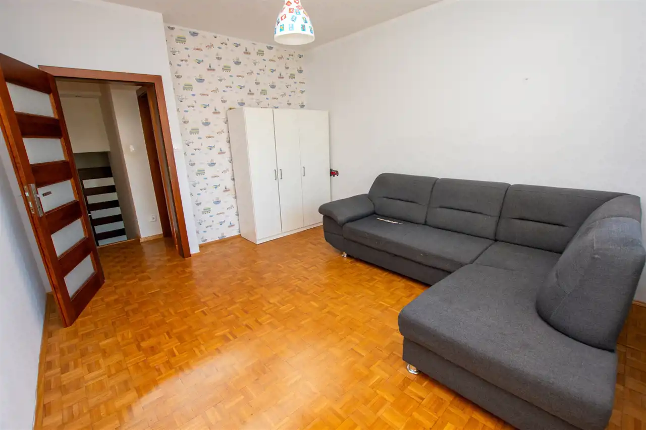 - trzy w pełni niezależne pokoje, jeden z nich około 15,5 m2 z wyjściem na balkon, drugi mniejszy o pow. około 7,65 m2, trzeci największy o pow. około 21,40 m2. W pokojach na podłodze mozaika parkietowa, na ścianach gładzie i tapety,
