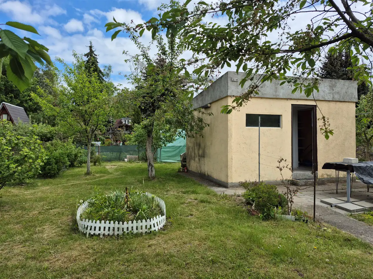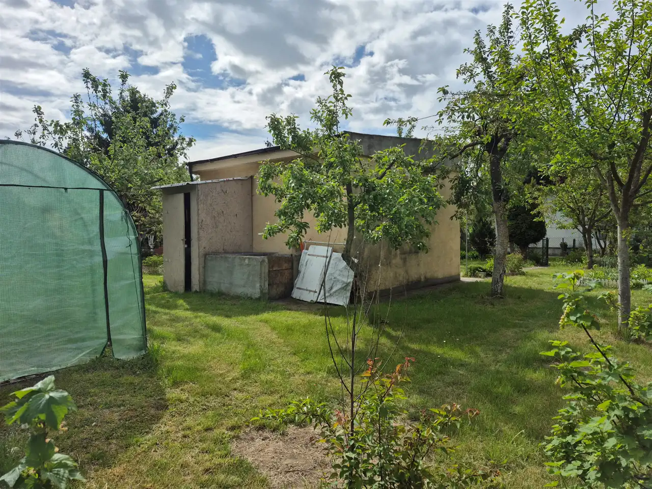 Na działce znajduje się murowany domek letniskowy o wymiarach zewnętrznych 4,5x4 oraz szklarnia foliowa.