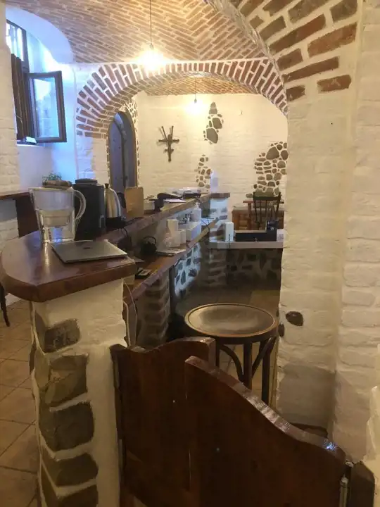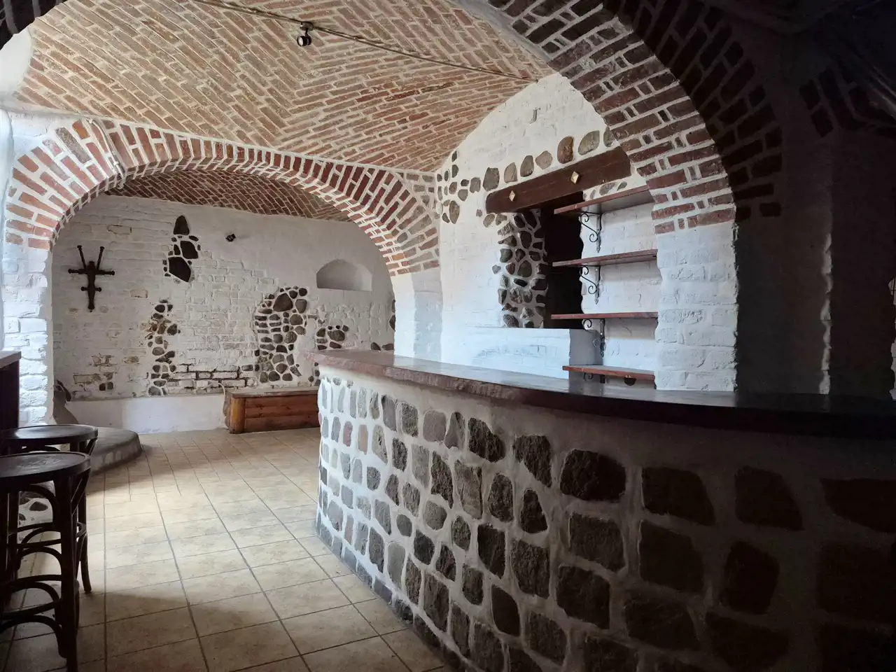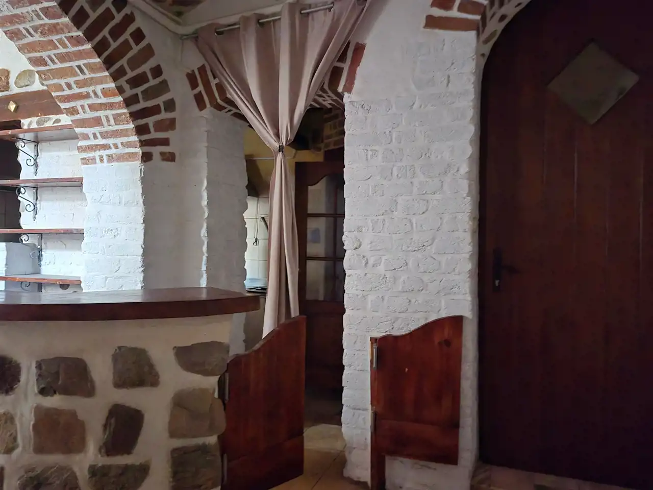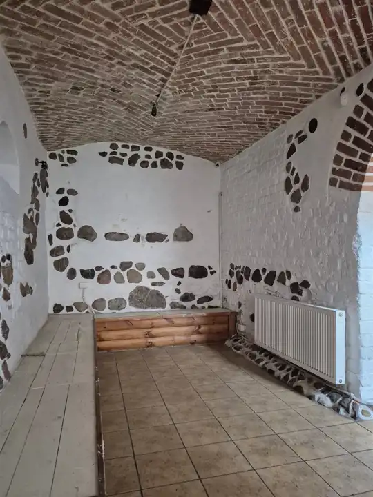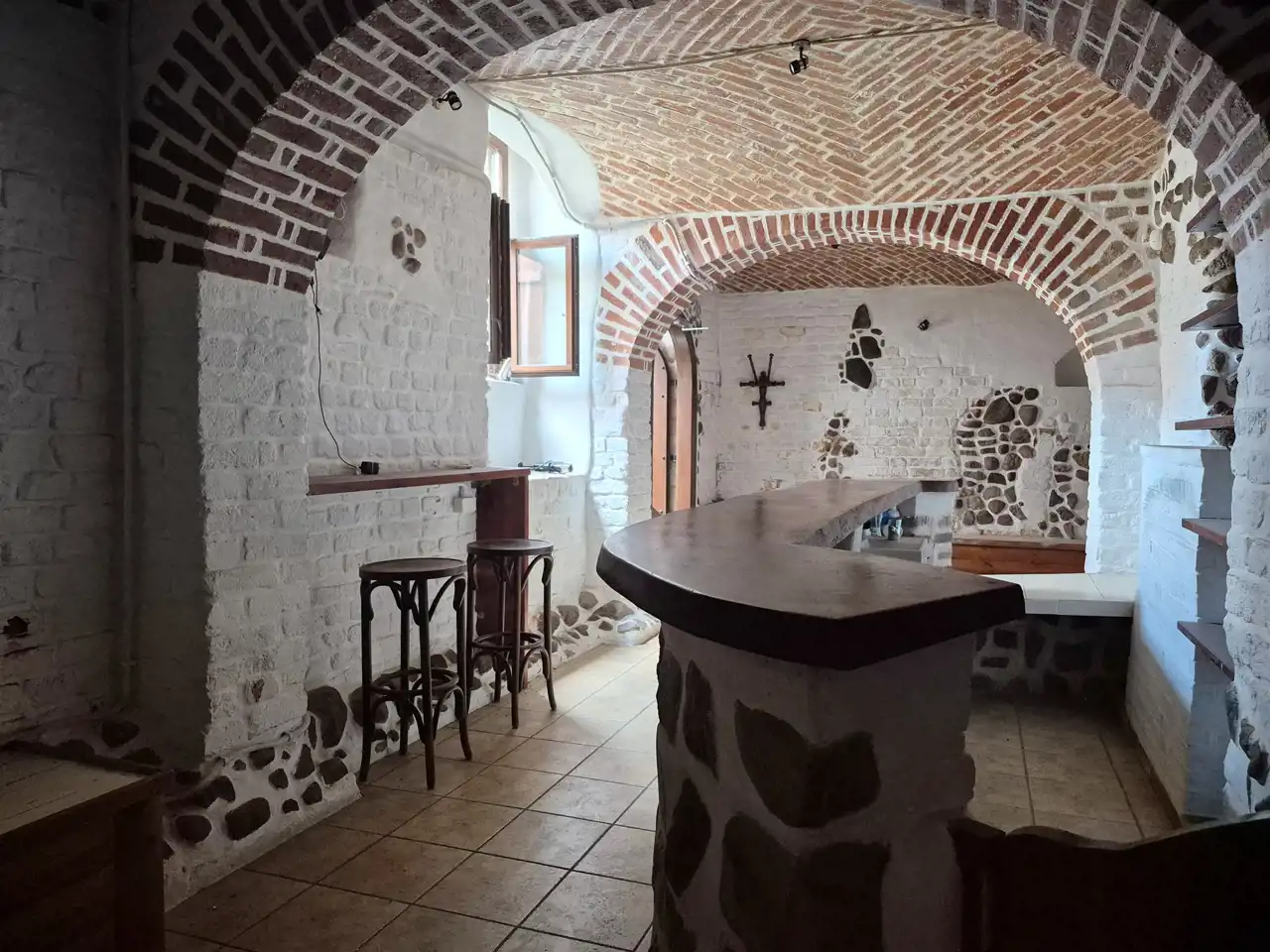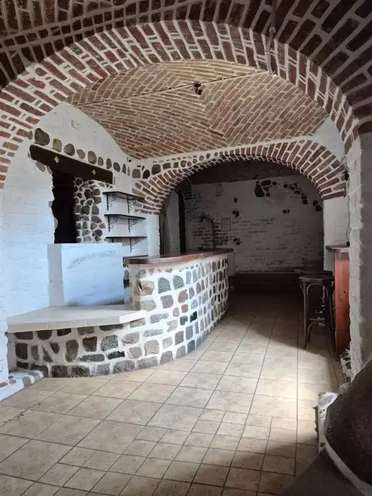 Efektywnie wykończony, kamień i cegiełki zostały ręcznie odkryte i odmalowane. W oknach okiennice. Całość ogrodzona, zamykana.
