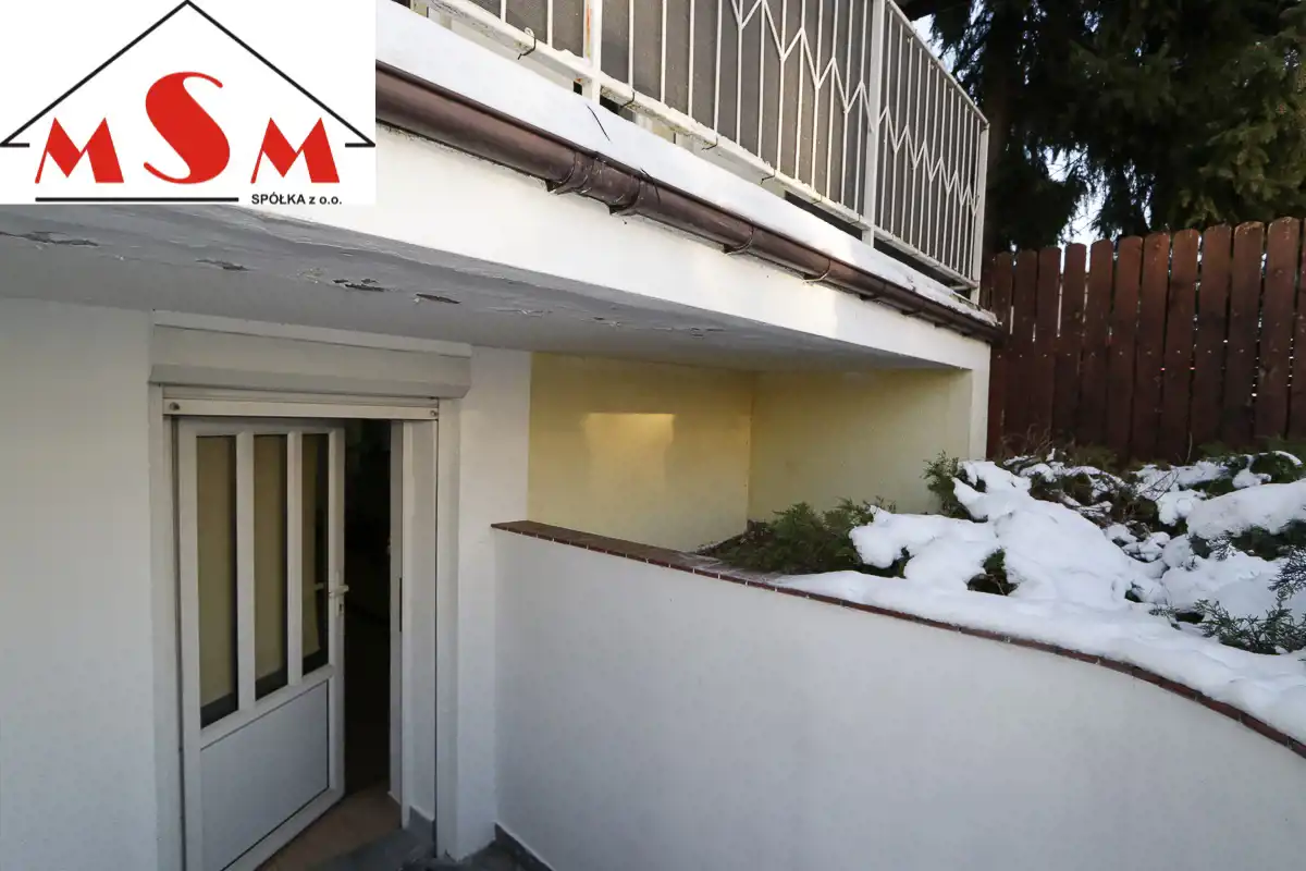 - lokal w przyziemiu na który składa się pomieszczenie z aneksem kuchennym, łazienka z WC, pomieszczenie gospodarcze i odrębne pomieszczenie z niewielkim oknem,