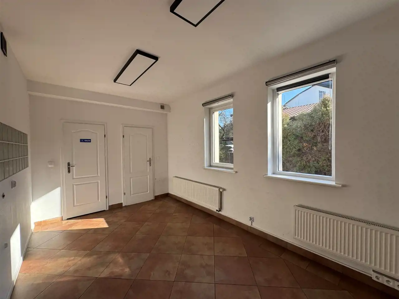Lokal składa się z trzech pomieszczeń, toalety oraz socjalu.