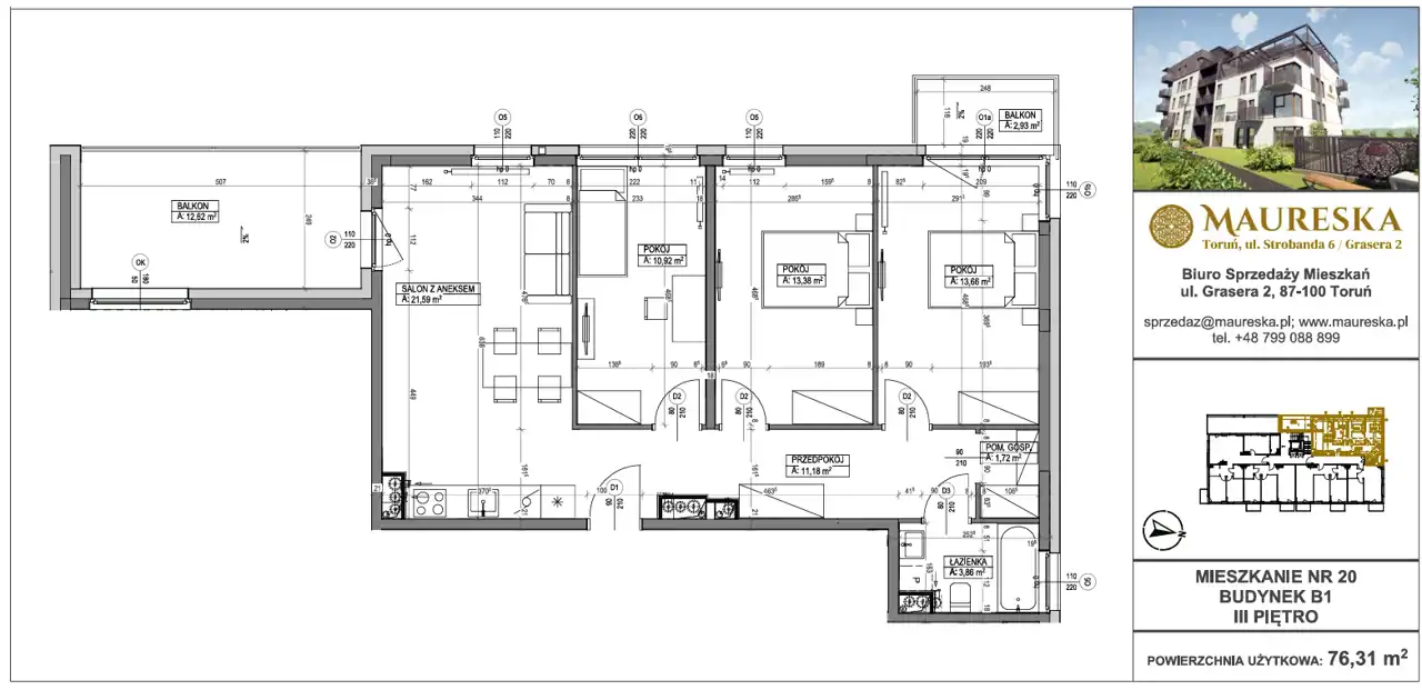 4 POKOJE | JAR – OSIEDLE MAURESKA | 76,31 m² | STANDARD PREMIUM | 2 BALKONY | WINDĄ | NOWE BUDOWNICTWO