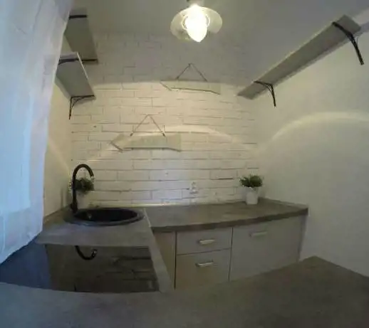 W skład mieszkania wchodzą: pokój z aneksem kuchennym, łazienka z WC oraz przedpokój.