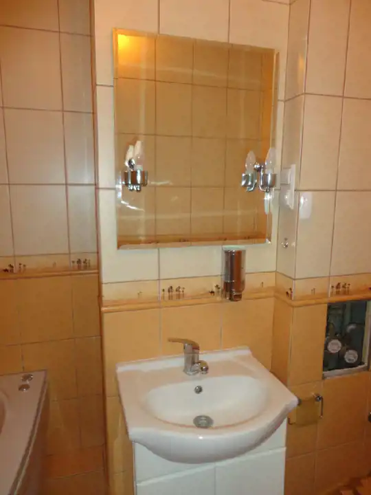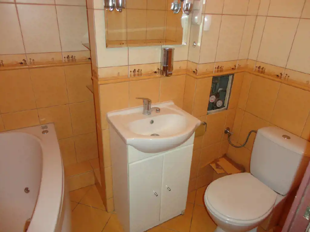 Na mieszkanie składają się 2 pokoje (z czego jeden można przedzielić na dwa), spora kuchnia oraz łazienka z WC w której właściciel zamontował wannę z hydromasażem.