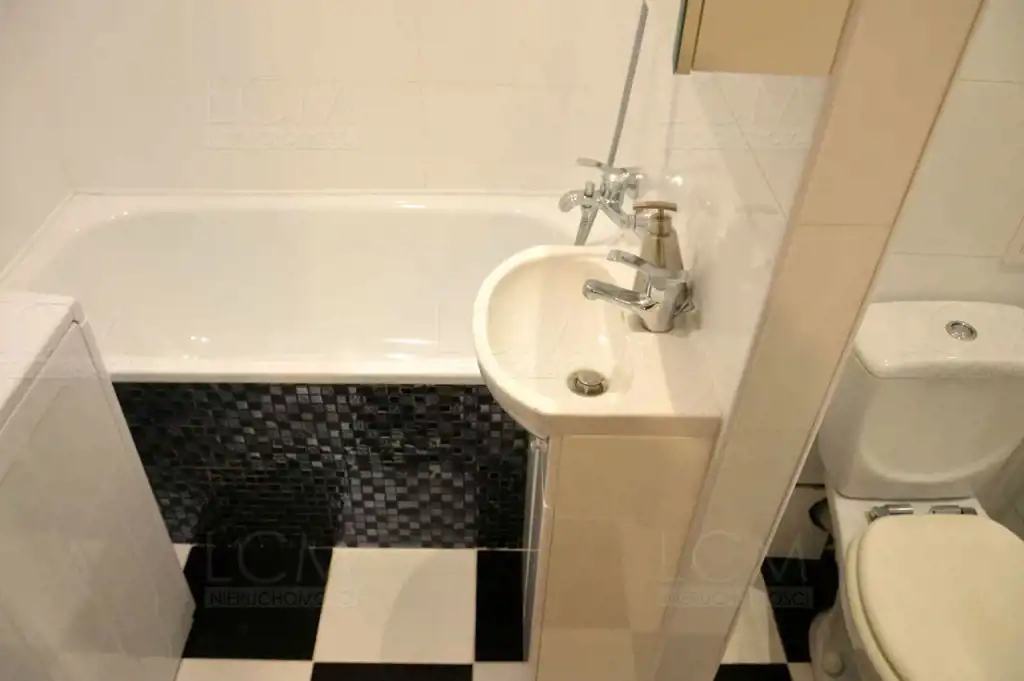 - łazienka razem z wc wyposażona w wannę,