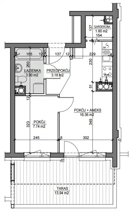 Z salonu prowadzi wyjście na TARAS: 13,94 m2.