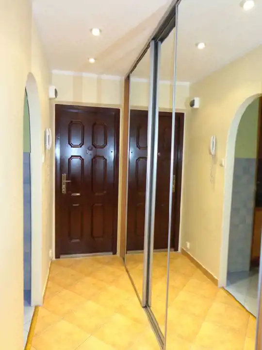 Mieszkanie zostało odremontowane. Na podłogach w pokojach położona jest odnowiona mozaika parkietowa oraz panele. W przedpokoju terakota. Na ścianach gładzie. Łazienka w nowego typu glazurze i terakocie. Kuchnia także w glazurze i terakocie.
