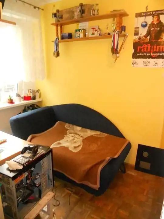 Mieszkanie o powierzchni 41,4 m2 składające się z 2 pokoi, kuchni z jadalnią, przedpokoju i łazienki z WC. Mieszkanie wymaga przeprowadzenia remontu. Na podłogach mozaika parkietowa, na ścianach tapety. Okna wymienione na PCV o zachodniej wystawie. Mieszkanie posiada balkon oraz przynależną piwnicę. Lokalizacja rewelacyjna dla studentów! 10 minut piechotą na UMK! Niedaleko do Starego Miasta. W otoczeniu markety (Polo, Biedronka,Tesco), punkty usługowe, przystanki autobusowe i tramwajowe, piękny park miejski.