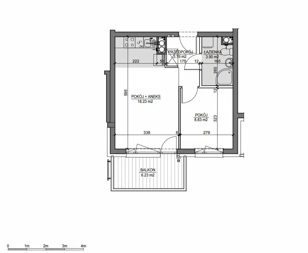 - Charakterystyka mieszkania 36.05 m2, 2 pokoje
