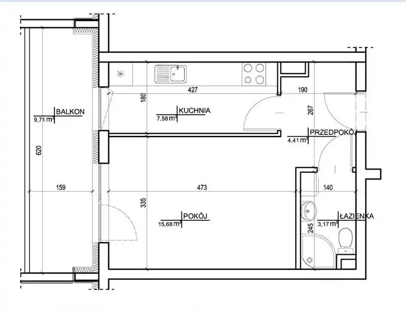 - Charakterystyka mieszkania 31.97 m2, 1 pokój
