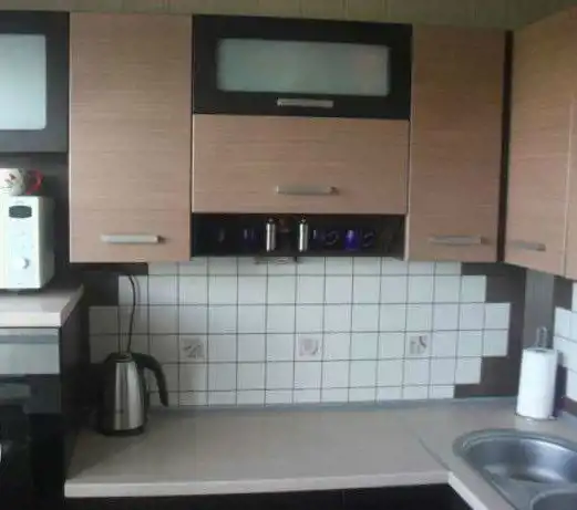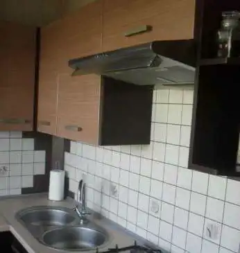 Kuchnia – zabudowa meblowa łącznie z piekarnikiem, płytą gazową, pochłaniaczem i lodówką.