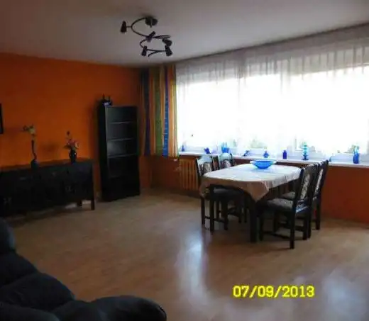 W salonie na ścianach tynk baranek, na podłodze panele, w pokojach gładzie, panele, wykładzina dywanowa. W kuchni, łazience i toalecie na podłodze płytki. Okna i parapety PVC w całym mieszkaniu.