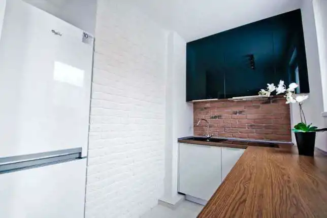W cenie pozostaje lakierowana nowa zabudowa kuchenna wraz ze sprzętem AGD.