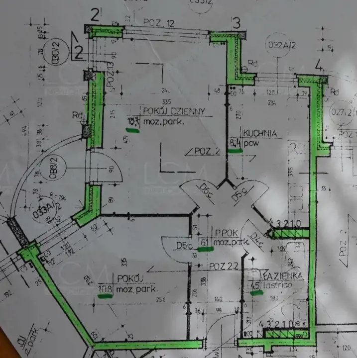 Na podłogach pokoi i przedpokoju położona jest mozaika parkietowa a na ścianach gładzie. W kuchni i łazience glazura i terakota. W kuchni zabudowa kuchenna. Okna drewniane.