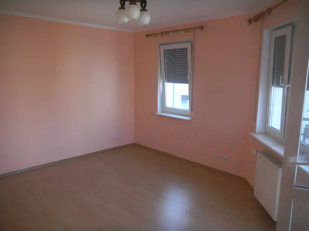 Okna PCV, na podłogach pokoi panele, na ścianach gładzie, rolety zewnętrzne.